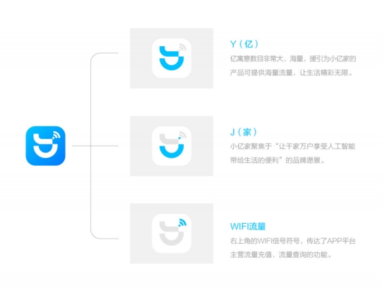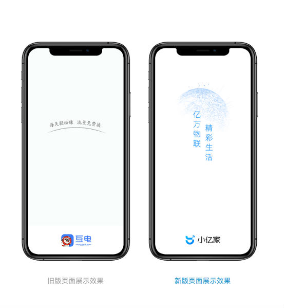 对比新旧LOGO,可以看出小亿家APP继承互电APP主体色蓝色,而后灵活创新,采用晴天蓝和星空蓝,晴朗蓝天是对美好生活的向往,星空璀璨的夜晚是梦想放飞的时刻,寓意小亿家APP 24小时默默陪伴,无微不至,旨在实现“亿万互联,精彩生活”美好愿景。