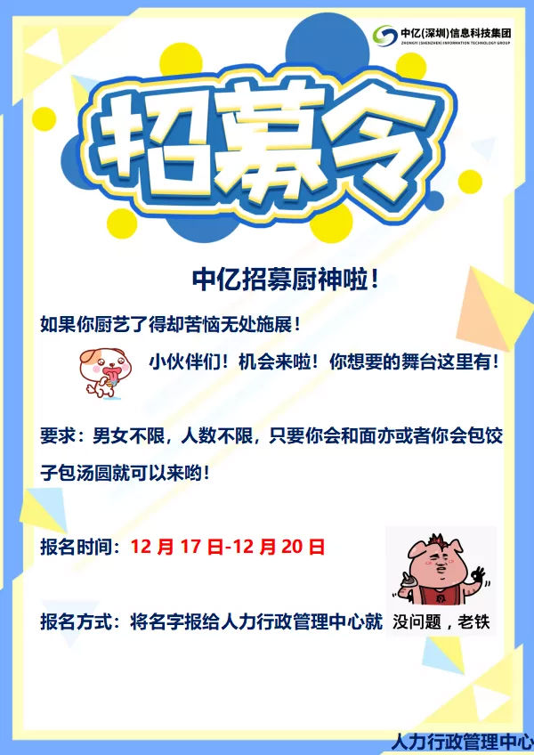 早在一周前,公司就发起了招募令——平博pinnacle体育招募厨神啦!希望在冬至这天,既能让大家能吃到好吃的汤圆、饺子,又能让厨艺的小伙伴有舞台展示自己的厨艺。