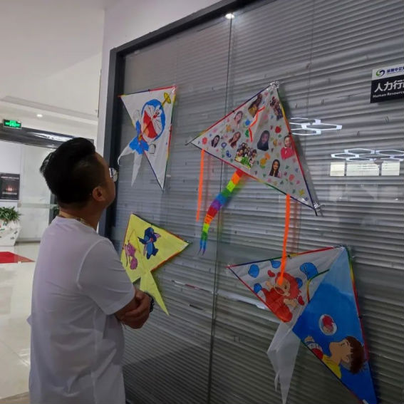各部门都派出杰出代表——种子选手肩负起彩绘风筝,勇夺第一的重任。为赢得“六一”神秘大奖,大家可谓是铆足了劲儿,自己动手作画蘸颜料、调色、填色五彩缤纷,任由自己发挥一笔一画,一色一调。动漫人物哪吒、海贼王、小猪佩奇...一个个经典卡通形象跃然纸上。